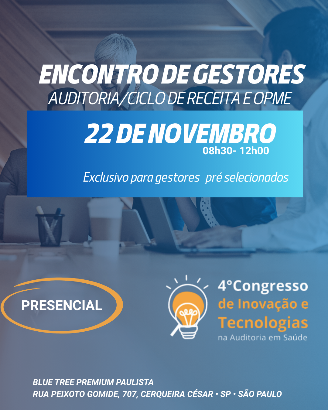 100% DESCONTO PARA MEMBRO BLACK DA COMUNIDADE DE AUDITORES EM SAÚDE (APENAS INGRESSO ONLINE/ADESÃO MÍNINO DE 6 MESES PRÉVIO A DATA DO EVENTO )