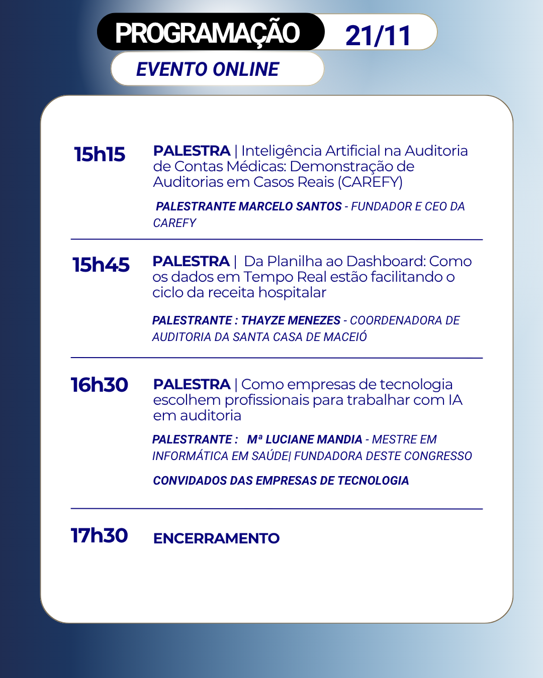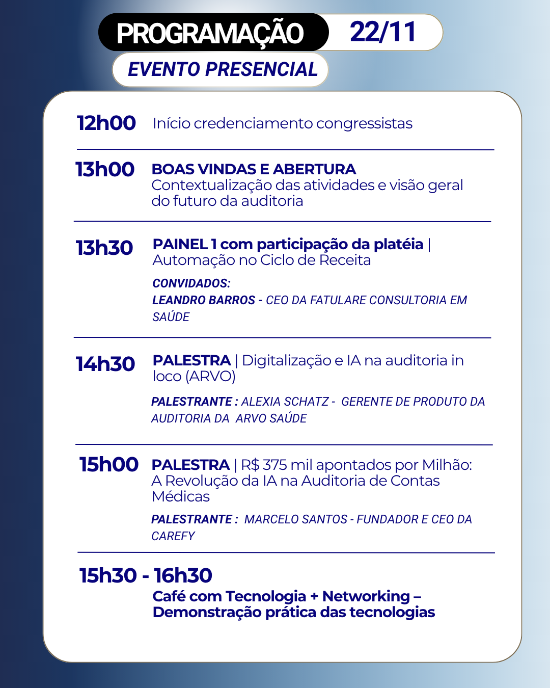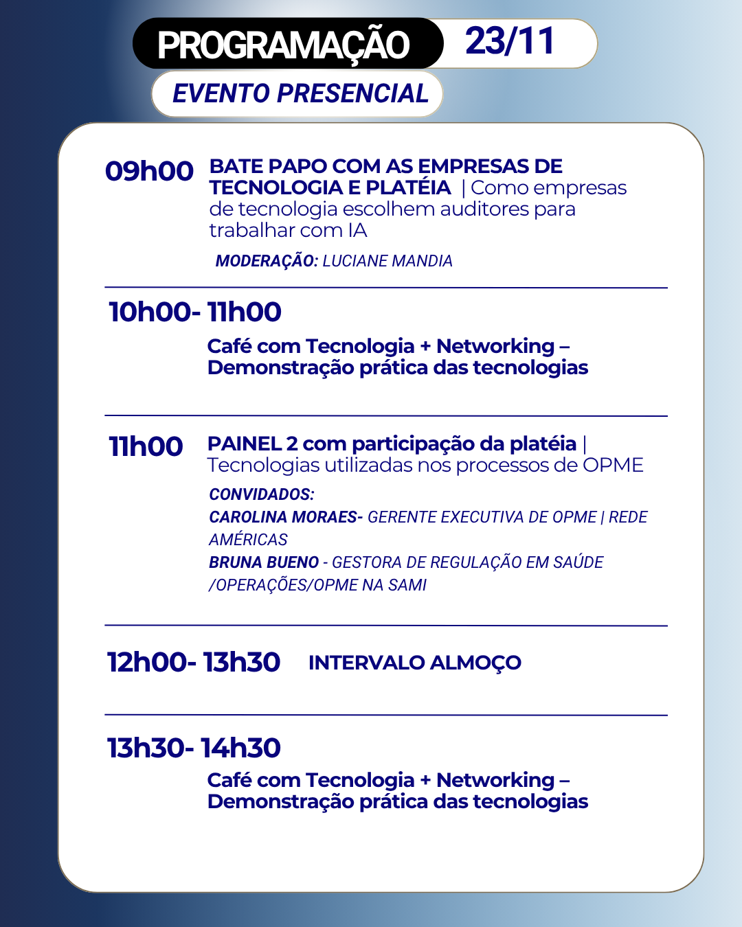 O 3º Congresso de Inovação e Tecnologias na Auditoria em Saúde, em 2023, foi um verdadeiro marco na minha trajetória. Na época, atuava como gestora em uma operadora e fui convidada para o Encontro de Gestores e, posteriormente, para o Congresso, onde tive meu primeiro contato com a transformação digital na saúde.