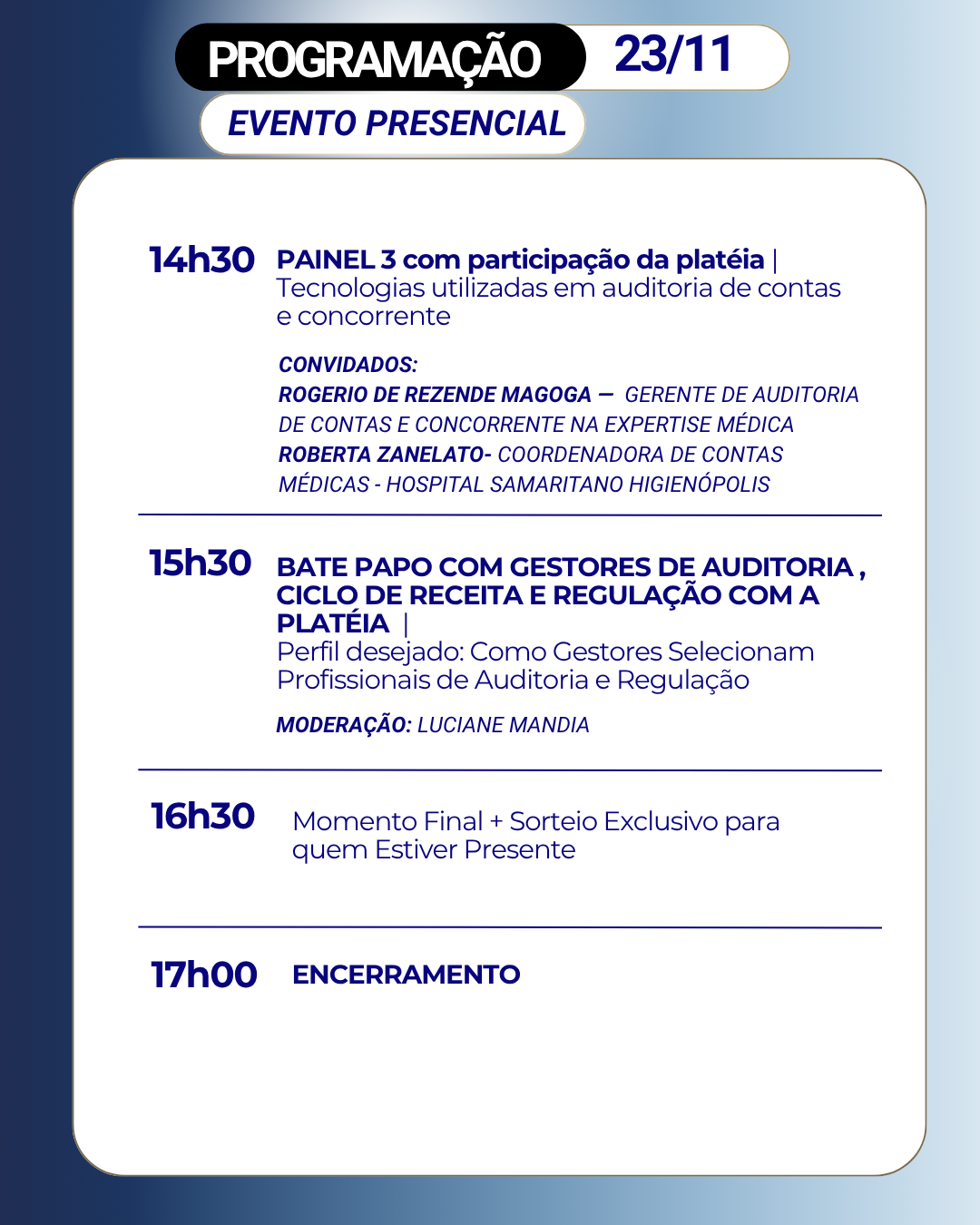 DIA 22 e 23 DE NOVEMBRO - evento presencial