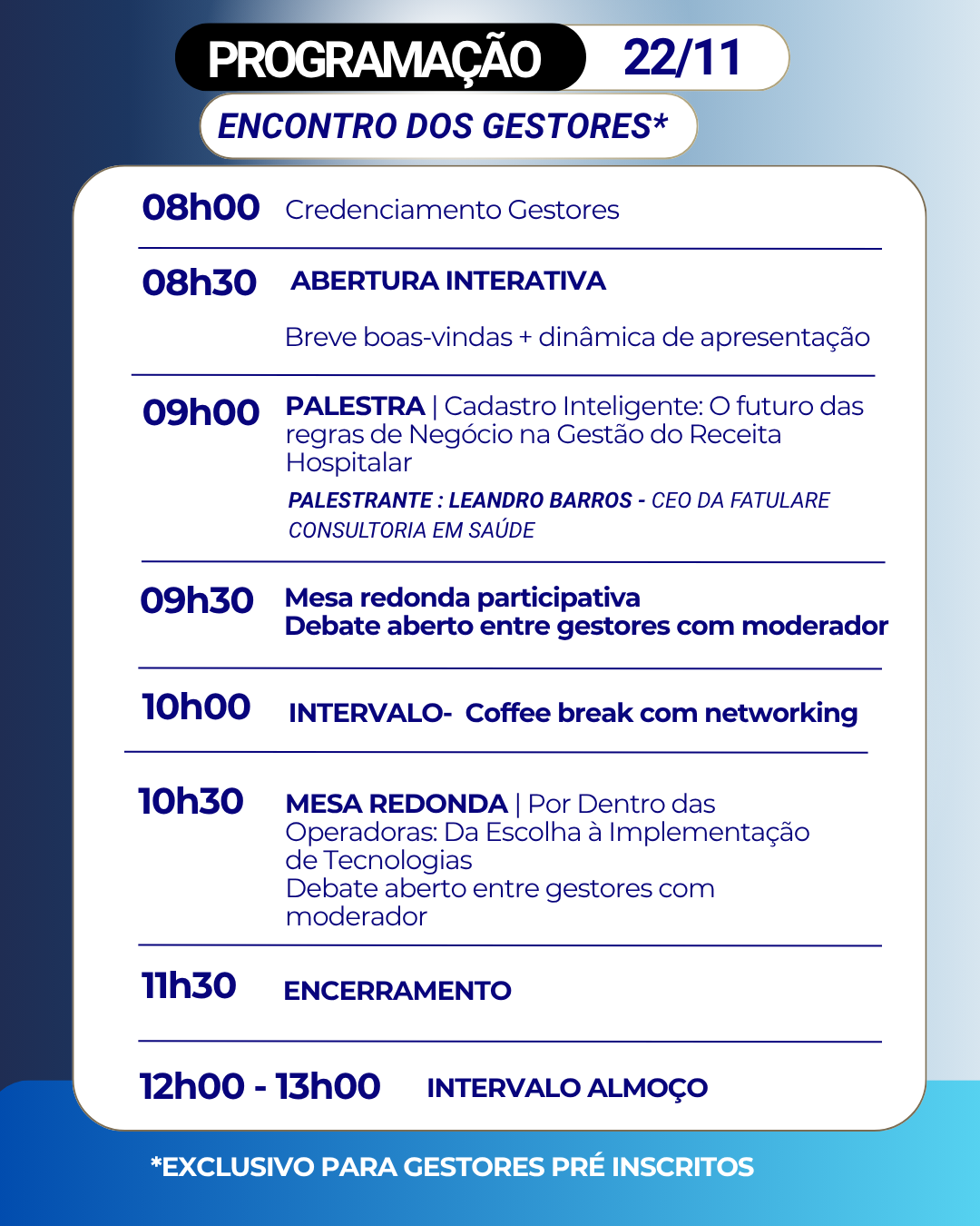 de experiência em Gestão do Ciclo da Receita Hospitalar, Faturamento, Cadastro e Glosas.